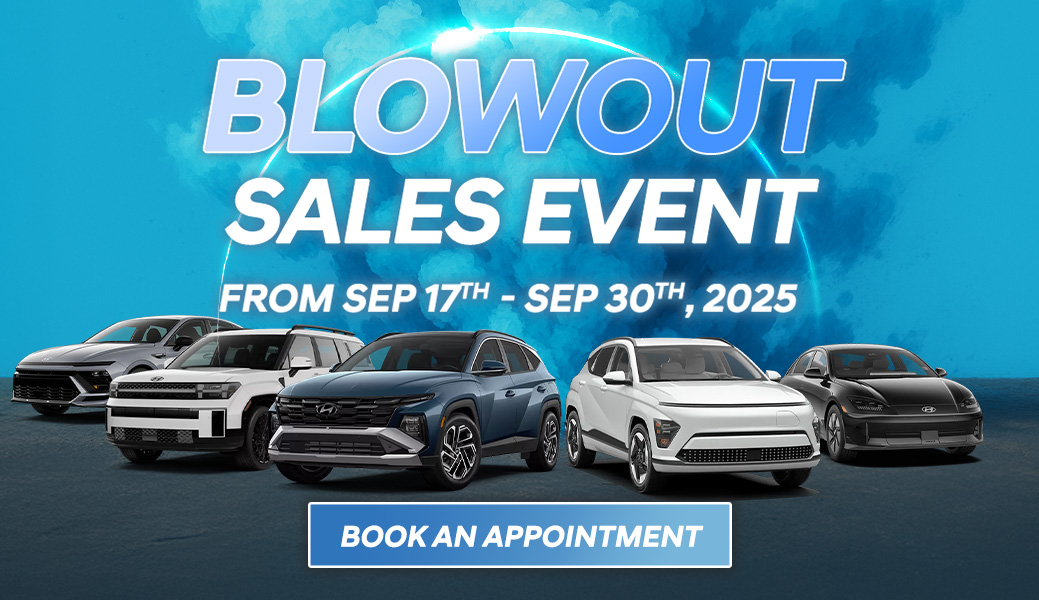 The Blowout Sales Event offers at Don Valley North Hyundai valid from Sep 17th - Sep 30th, 2025. Offers subject to change or cancellation without notice. Exclusions and restrictions apply; offers may not be combined with other promotions unless otherwise specified. Please contact Don Valley North Hyundai for additional terms and conditions.