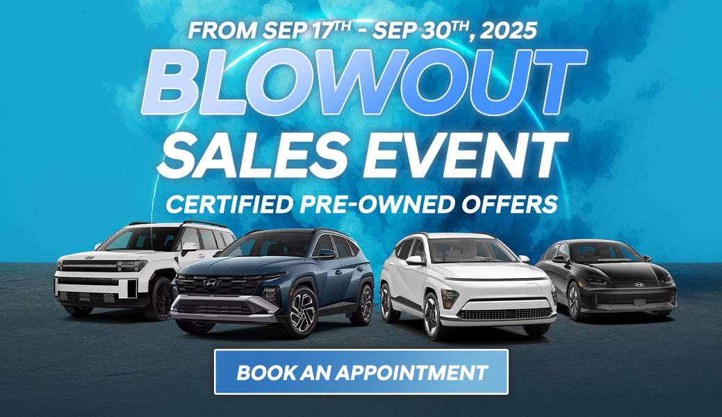 The Blowout Sales Event offers at Don Valley North Hyundai valid from Sep 17th - Sep 30th, 2025. Offers subject to change or cancellation without notice. Exclusions and restrictions apply; offers may not be combined with other promotions unless otherwise specified. Please contact Don Valley North Hyundai for additional terms and conditions.